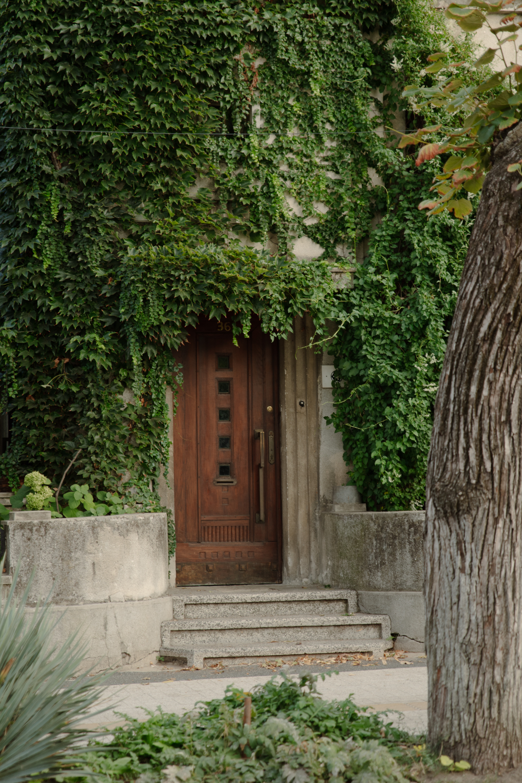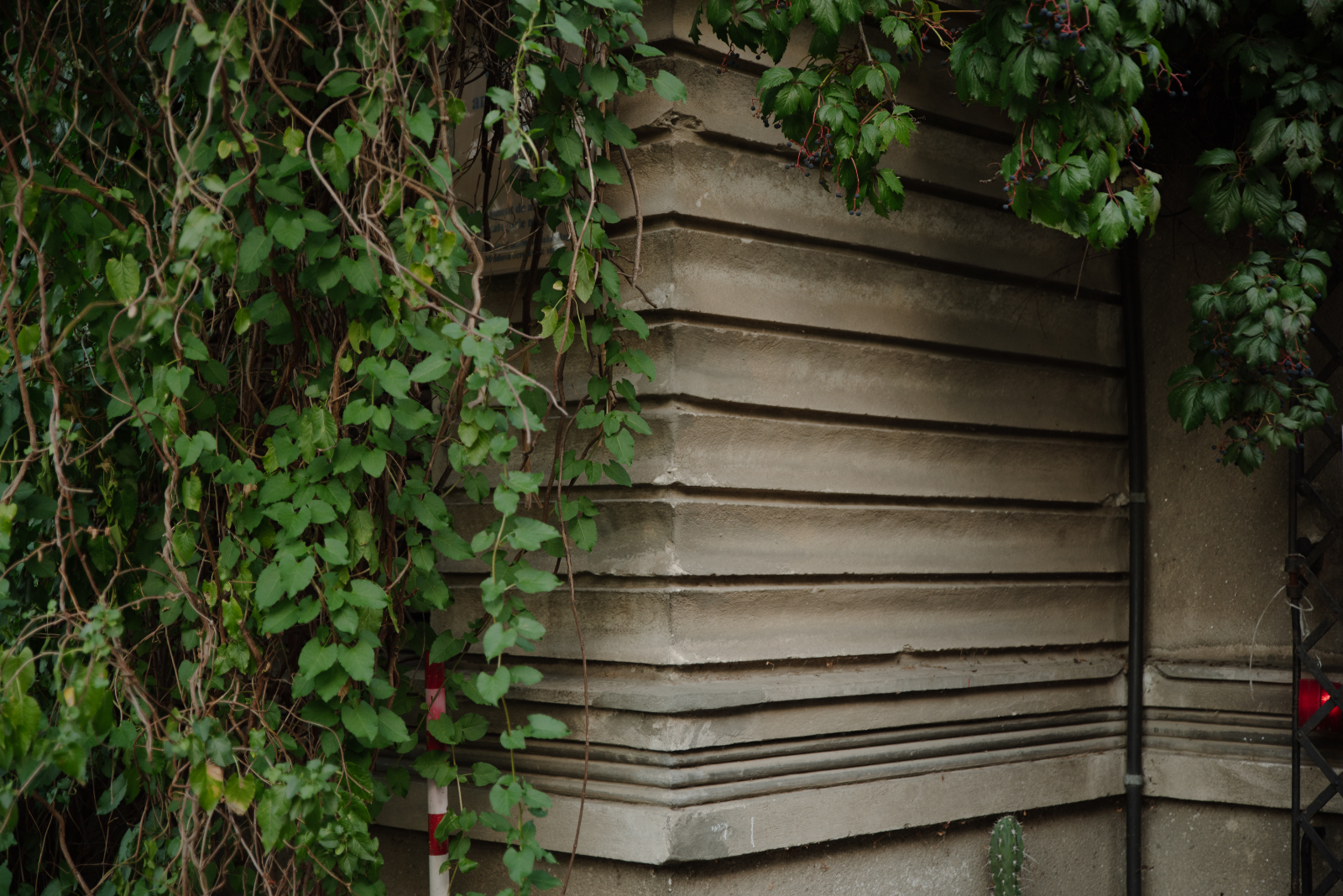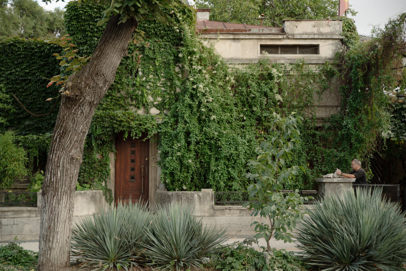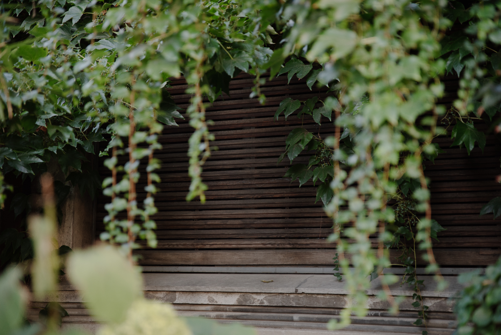 Clădirea are două terase – una la fațada principală și una la cea posterioară. Terasa – grădină, din spatele casei, care abundă în frunze de iederă, te duce cu gândul la serile de primăvară chiar dacă am vizitat acest loc la sfârșit de noiembrie.