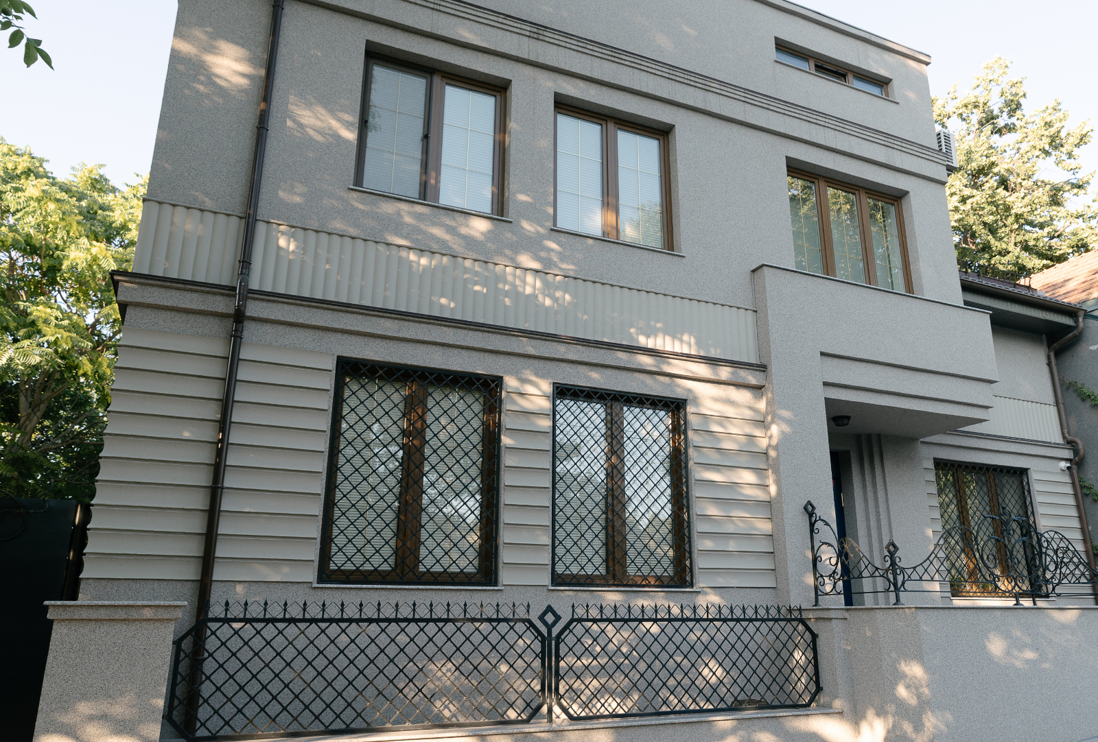 Clădirea din partea dreaptă a parcelei a fost reconstruită într-o vilă urbană cu parter şi etaj, a cărei faţadă dinspre stradă era soluţionată asimetric. La parter se află o terasă deschisă de unde se intră în interiorul clădirii. Terasa continuă pe toată lungimea edificiului fiind delimitată de stradă de un grilaj de metal cu motiv geometric suplimentat cu câţiva stâlpi mici şi parapet de piatră.