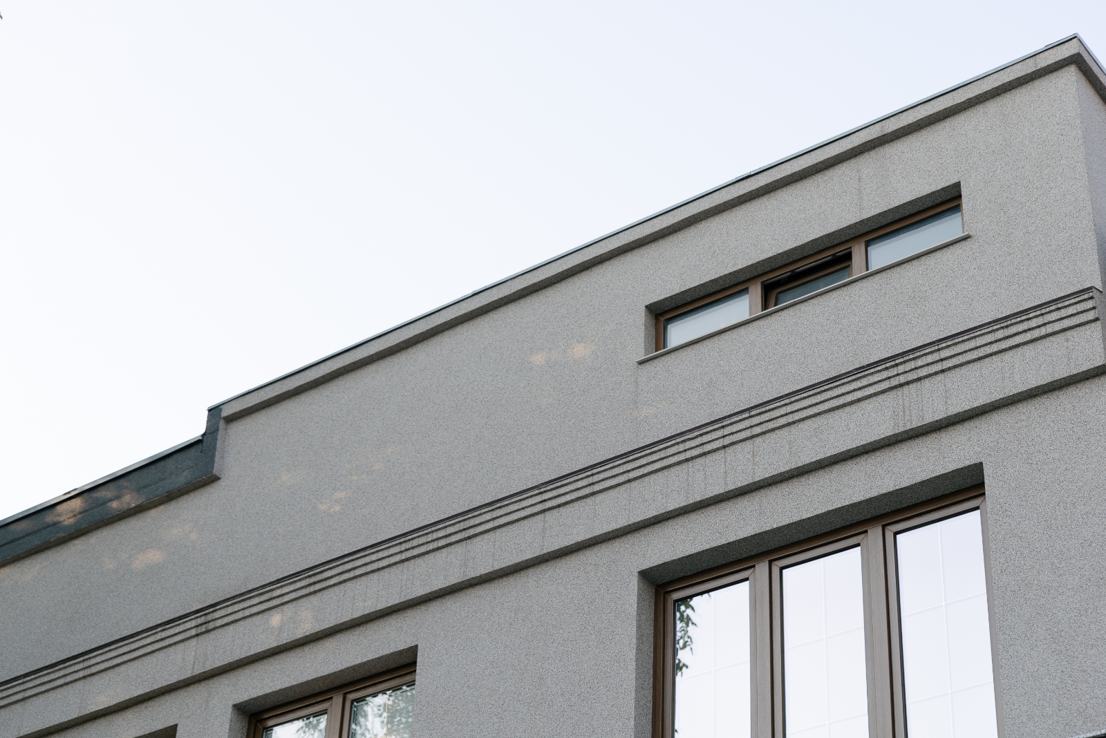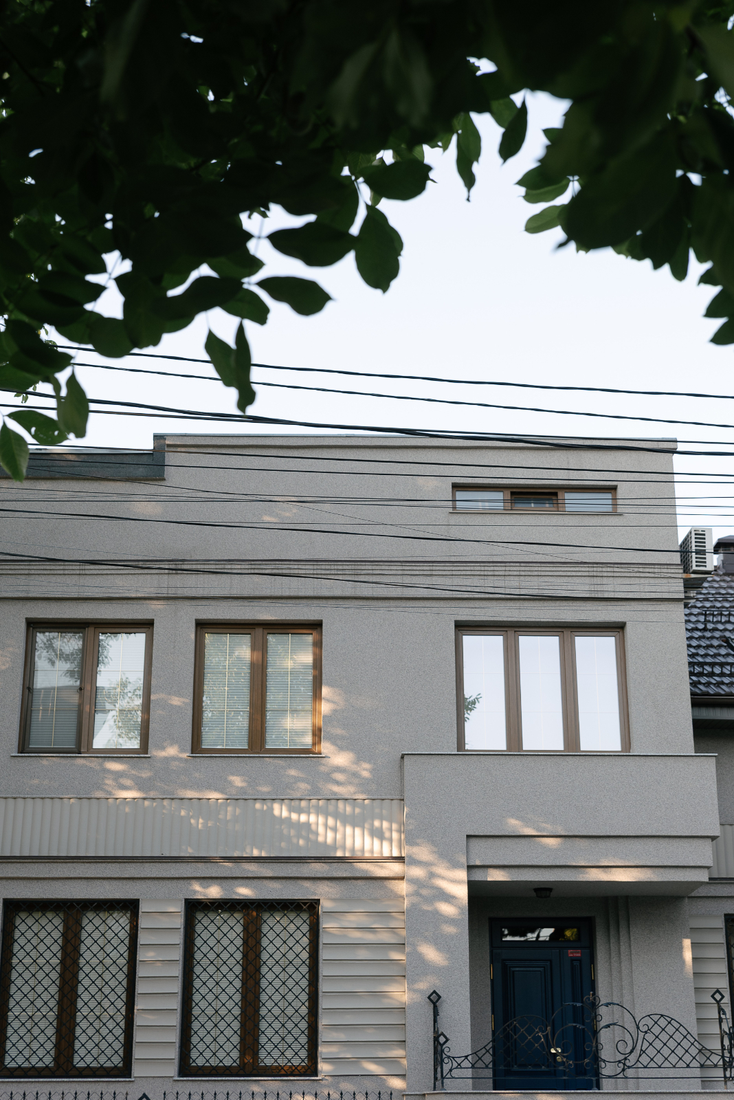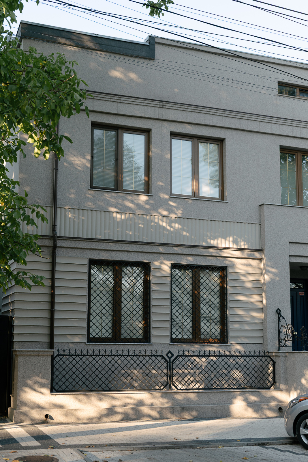 Parterul şi etajul sunt luminate prin ferestre dreptunghiulare de diferite dimensiuni, iar podul dispune de o fereastră îngustă dezvoltată pe orizontală. Faţada principală este determinată de mai multe linii verticale şi orizontale: striaţiile orizontale pe paramentul primului nivel, striaţiile verticale pe banda ce delimitează parterul de etaj, suprafeţele în retragere a balconului, cornişa de la parter, cornişa de la etaj, profilul de la extremitatea superioară a clădirii ş.a.